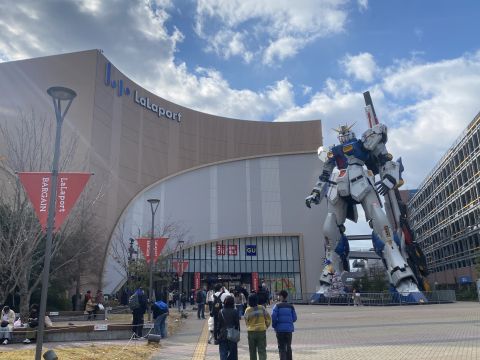 福岡店近くのららぽーとは地元と同じように駐車場待ち渋滞が起きていた。