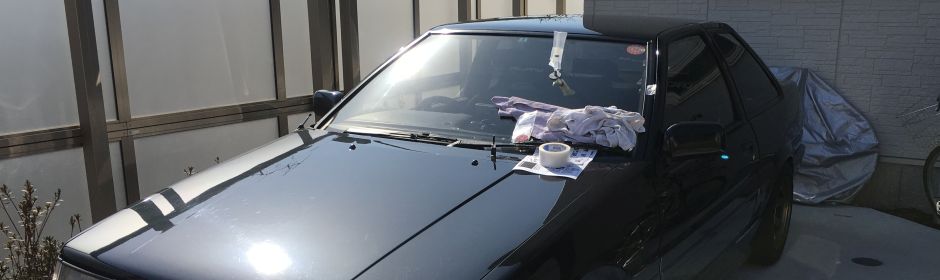 ノーマル然としたハチロクでディラーの車検を待つ。