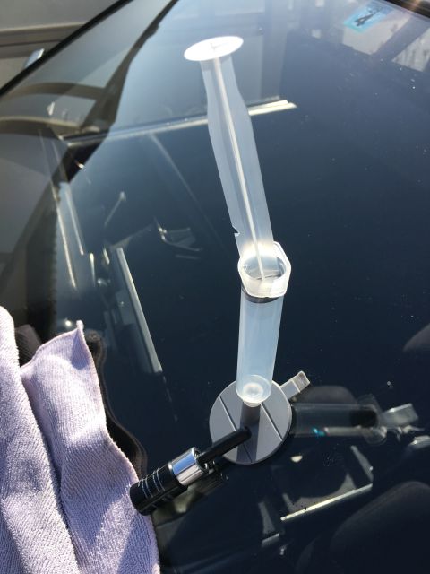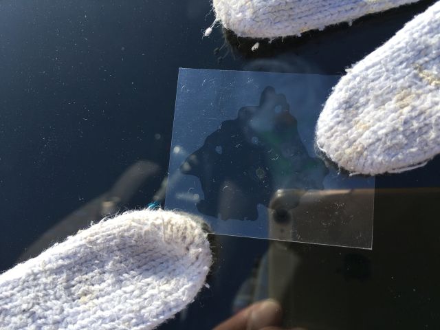 一滴たらしてフィルムを貼って15分。と待ちたいところだが、トヨタのディラーに車検の見積の時間になってしまったので、この状態でディラーへ。