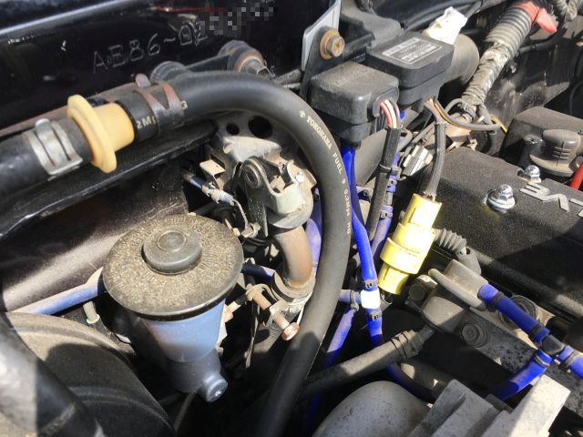 黄色い水が出てくる。トヨタ純正の赤ではなく緑を入れているので、少し錆び気味であった。