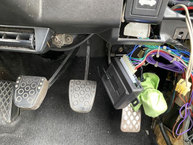 確かアクセルペダルの右側のカバーの中だったと思う。