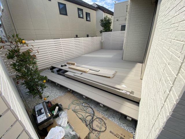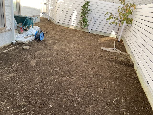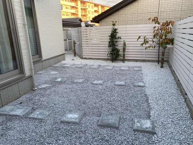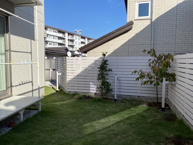 もともとの庭は芝生で、小さいフェンスがついていたが、周りからは丸見えだった。