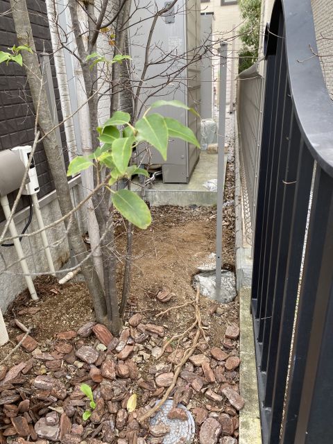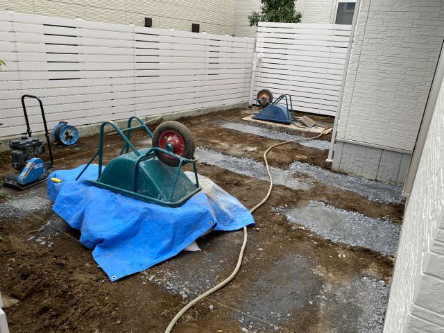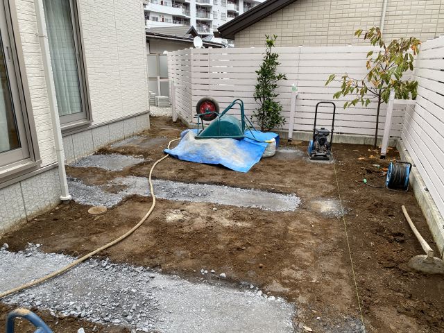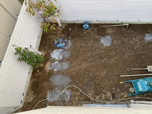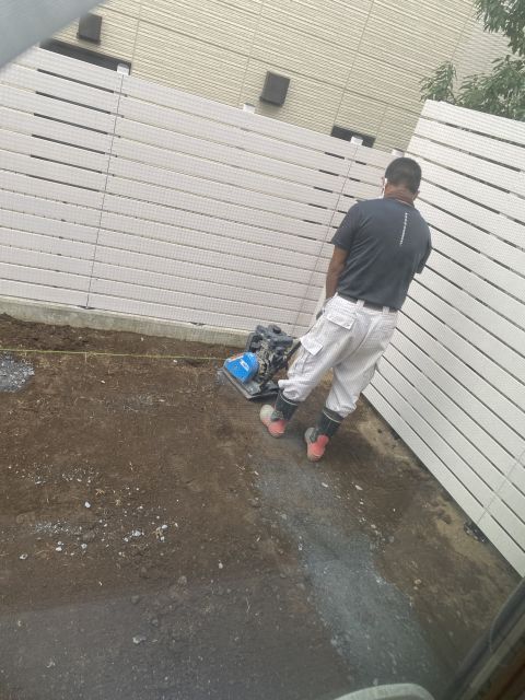 昨日と別の人が来て土を掘って砕石を敷いている。