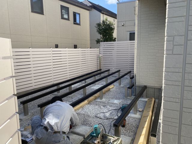 今日は門柱とフェンスの取り付け。