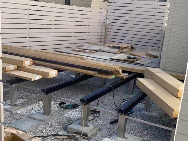 今日はウッドデッキの支柱を施工するらしい。