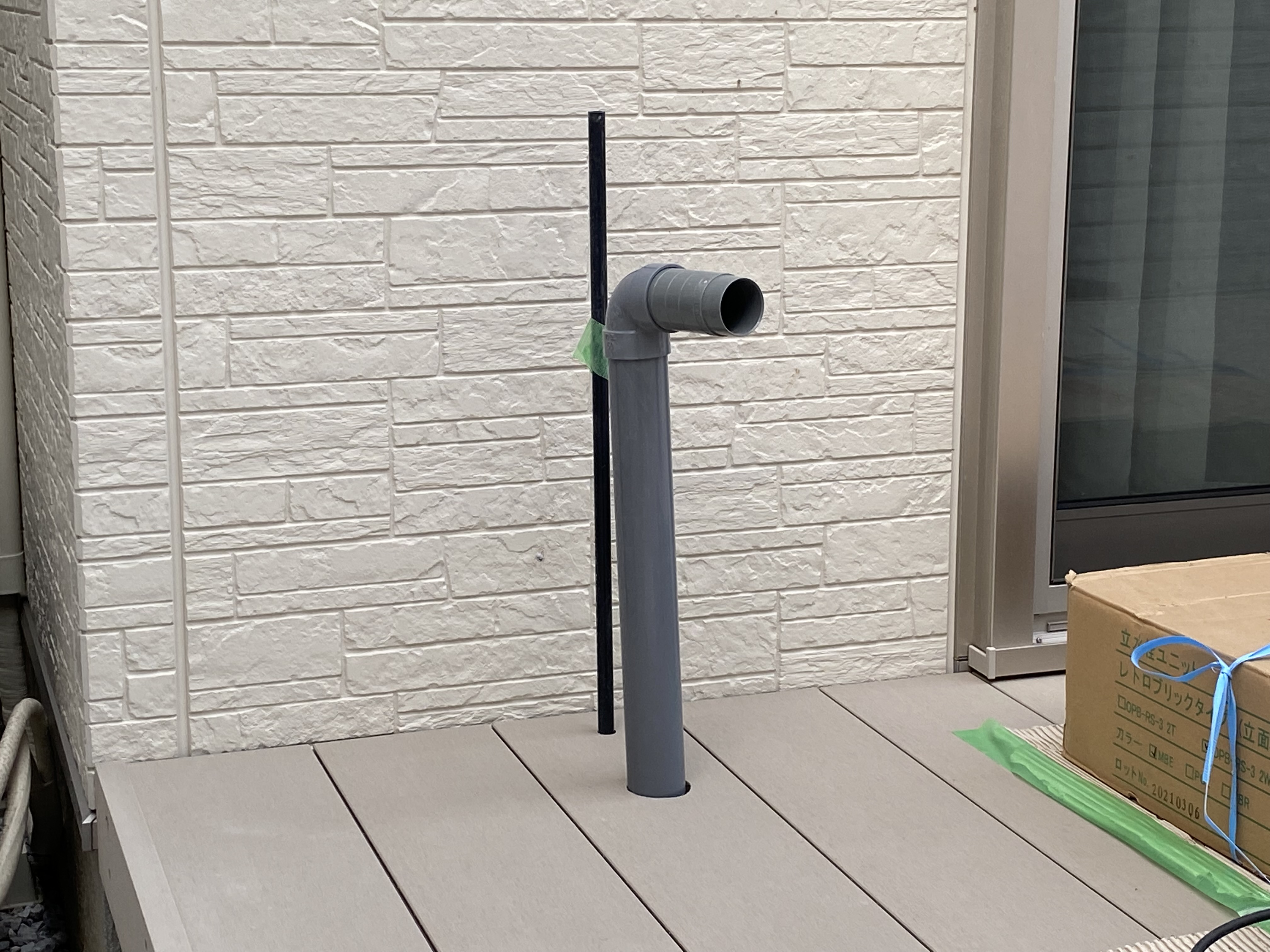 ダイワハウス標準の立水栓はウッドデッキにより上がるので変える。