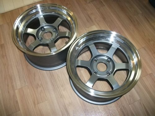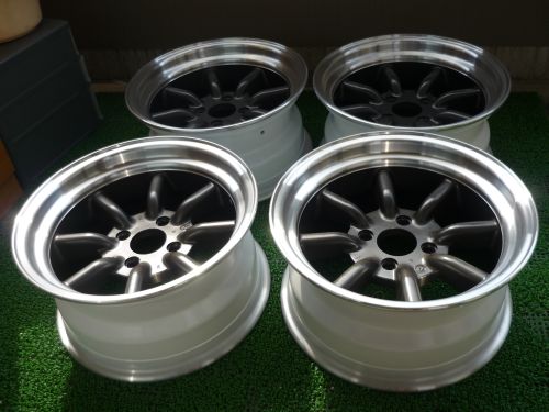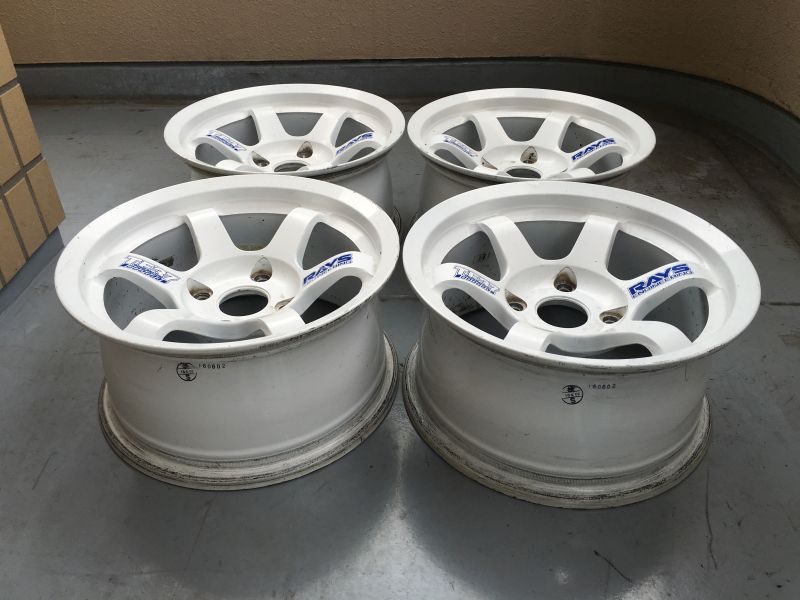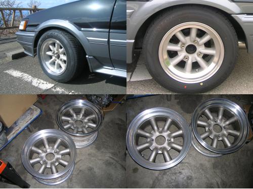 ヤフオクでワタナベ14インチ7Jを4本ゲット。切削リムでかっこいいです。