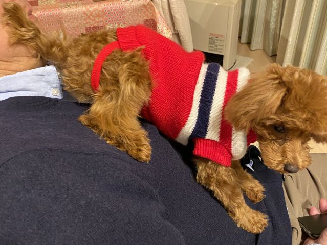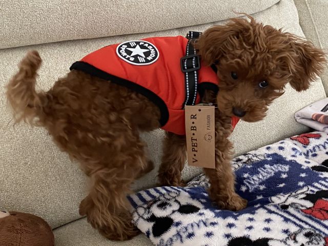 新しい服を着せるがちょっと小さい。