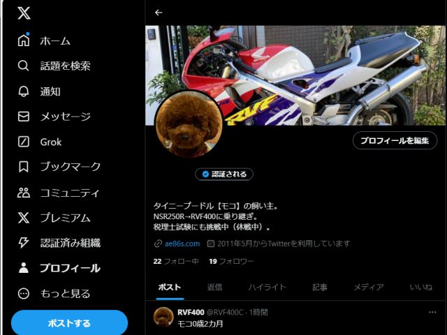 モコは主にX(Twitter)で記録しています。 #モコ #RVF400