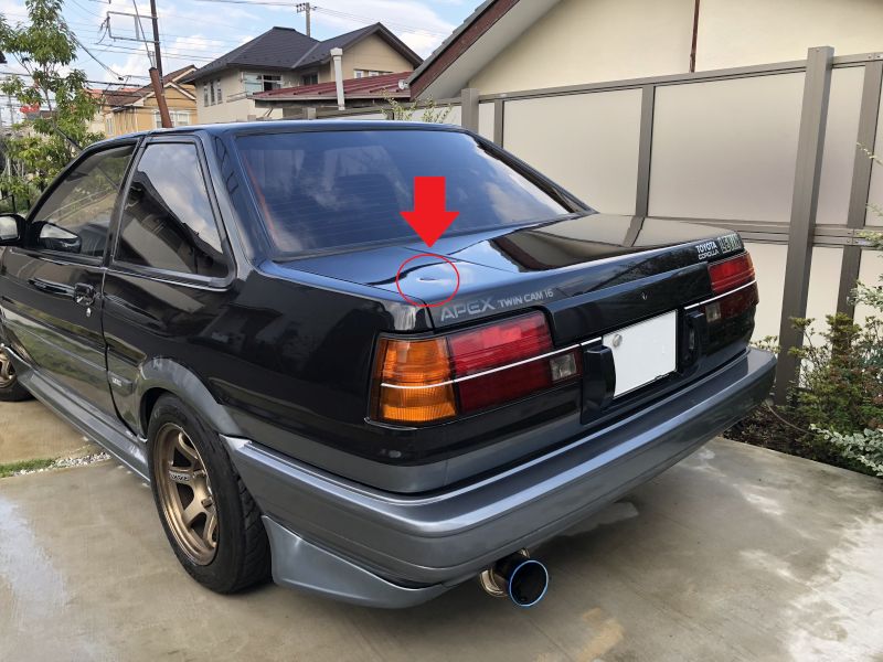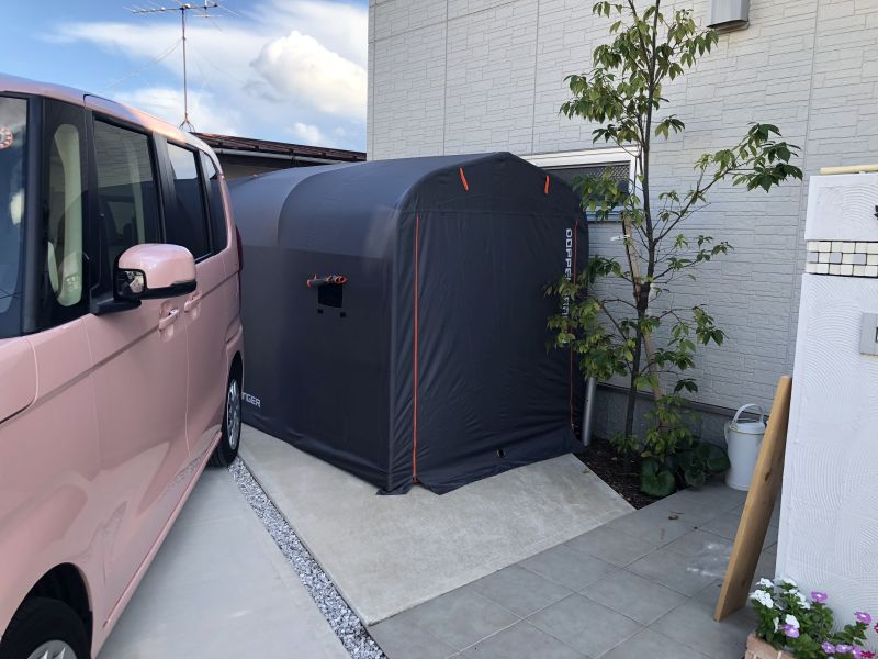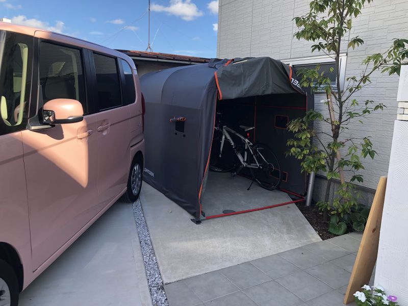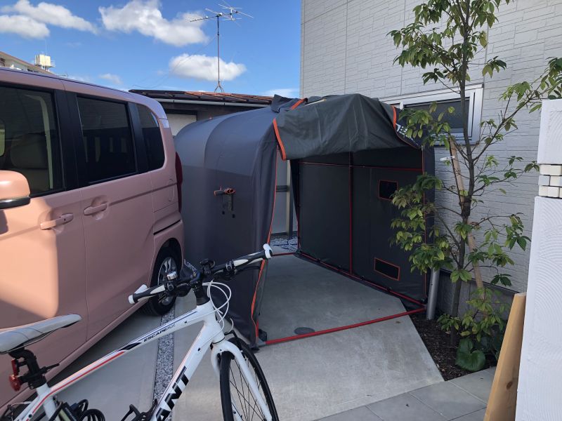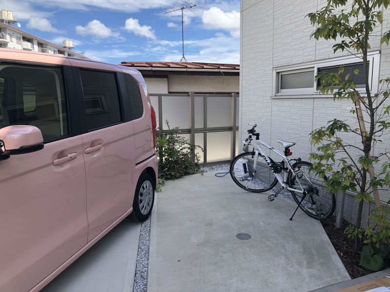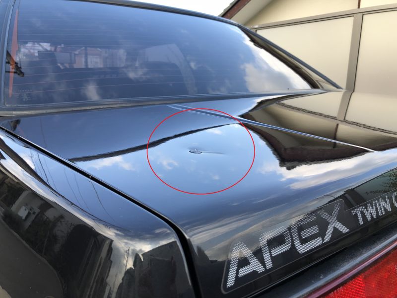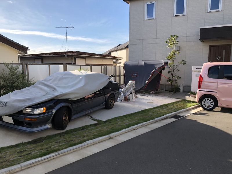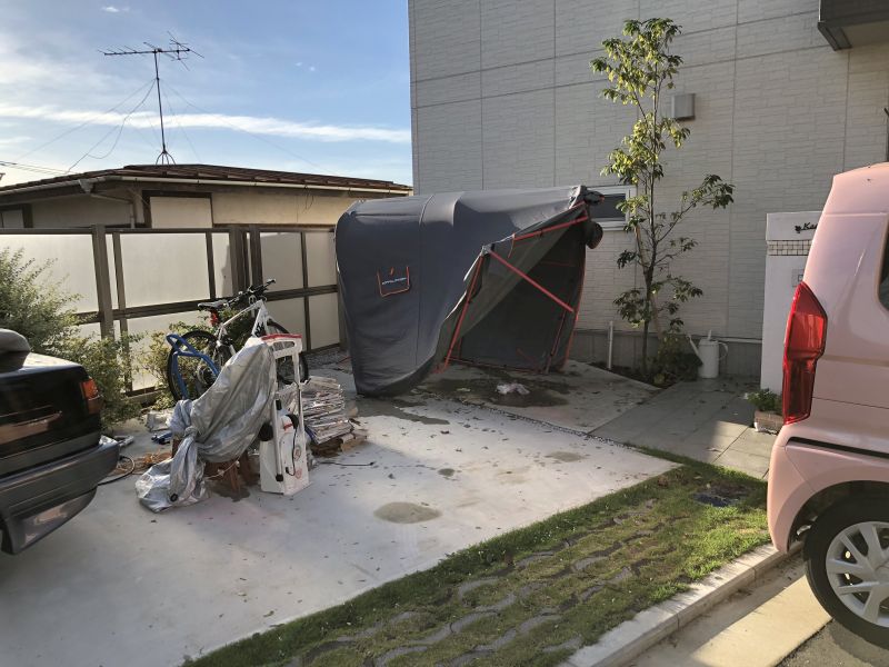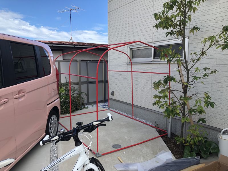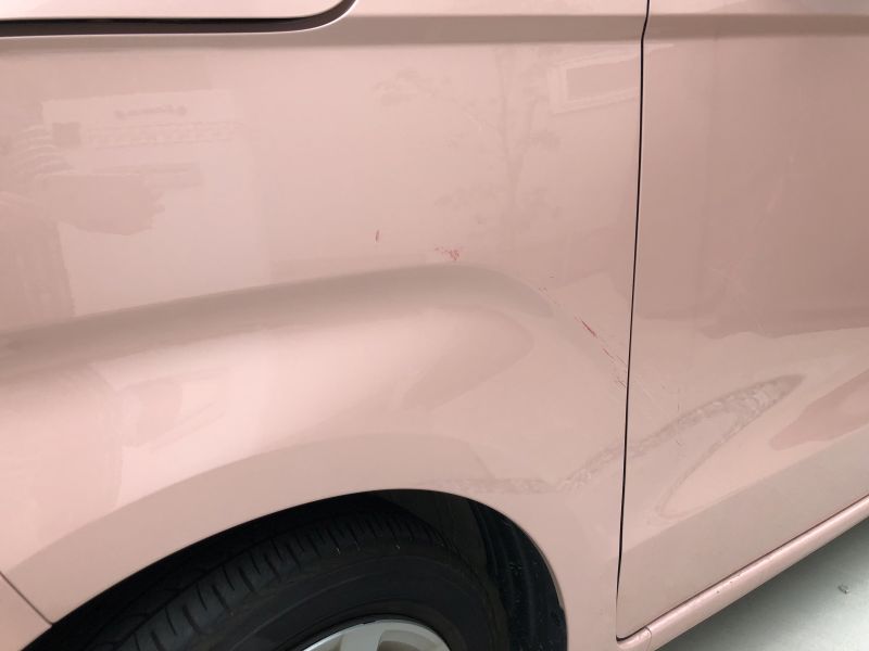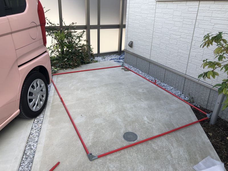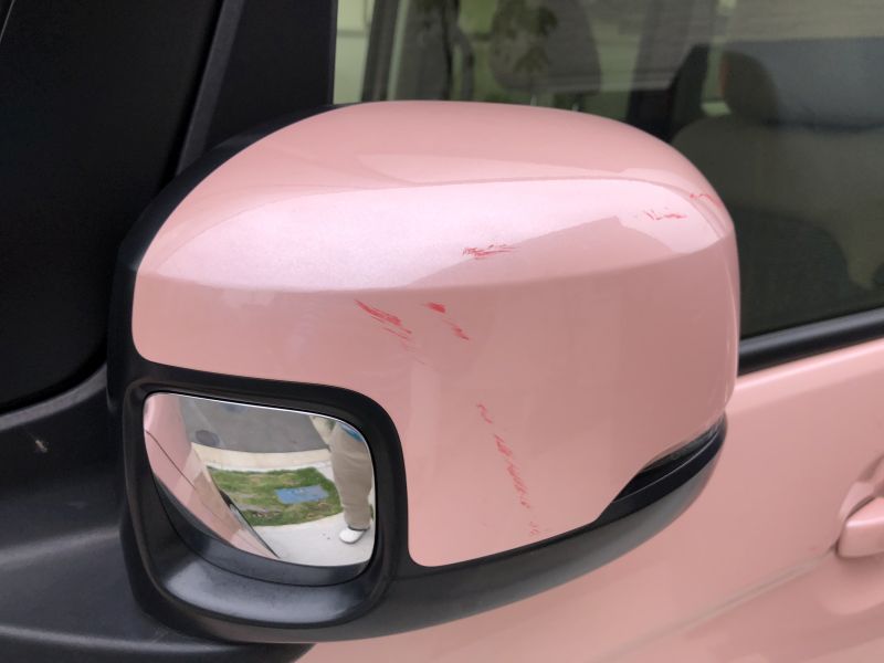 ガレージの赤いパイプの跡がミラーに擦れてついている。