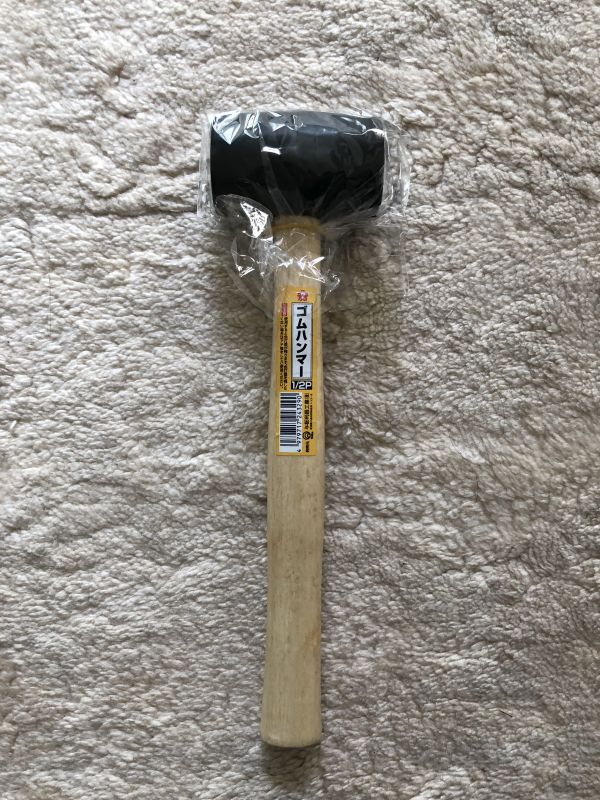 はめ込むのに人力では限界だったので、急遽ホームセンターでハンマーを買ってきた。
