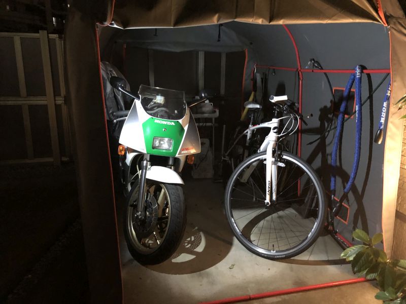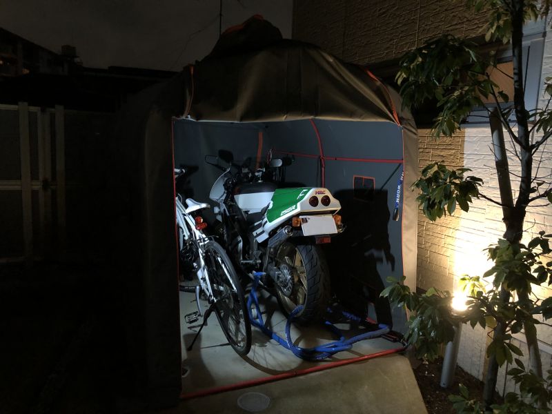 ここではこのような簡易なところの中で、さらにカバーをかけていたので2重にカバーして保管していたため、雨風は一切あたっていない。
