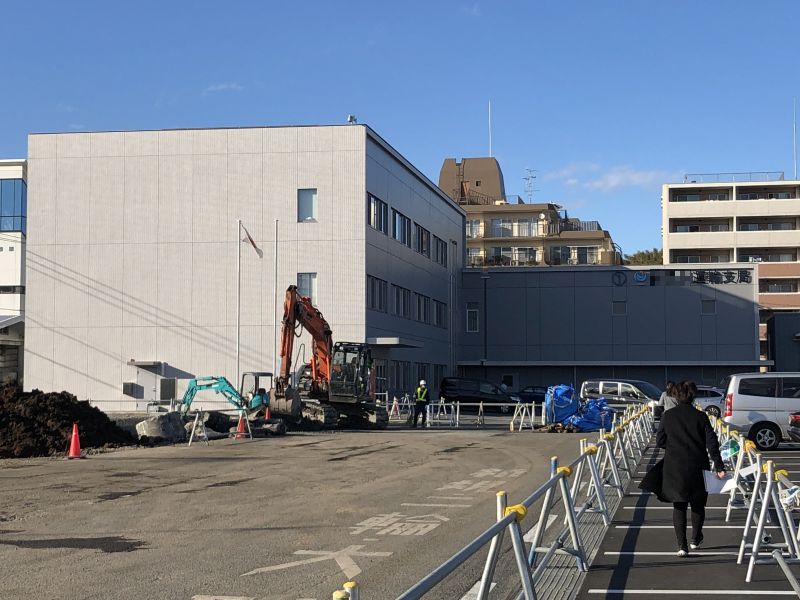 そして、こちらのいつの間にか新しい建物に建て替わっていて、どうも受付場所が車と一緒になっている。