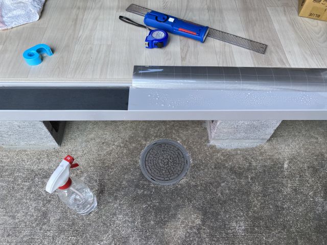 物置の縁のキズ防止に窓ガラスに貼るシートを張ってみる。