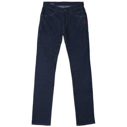 高強度素材コーデュラを混紡させたデニムパンツです。非常に豊かなストレッチ性を持ち合わせており、履き心地や運動性能に寄与します。脇部にファスナー開閉式エアインテークを装備しています。前身全面に配置されたメッシュ素材のパッド袋は着用時に足に引っかからない仕様になっています。