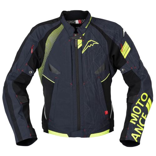 ライディング機能満載のスポーツジャケットです。スプレットエンボス柄素材やカラーリングを左右非対称とすることで、よりスポーティー感を追求しています。サイズ拡大調整と大型エアインテークを兼用したフロントダブルファスナー仕様を採用しました。高速走行時にもバタつきを最小限に抑える機能を袖や身頃に装備しています。防水生地によりツーリングでも使いやすく、袖のエアインテークと背脇のエアーダクトで幅広いシチュエーションに対応できるモデル。