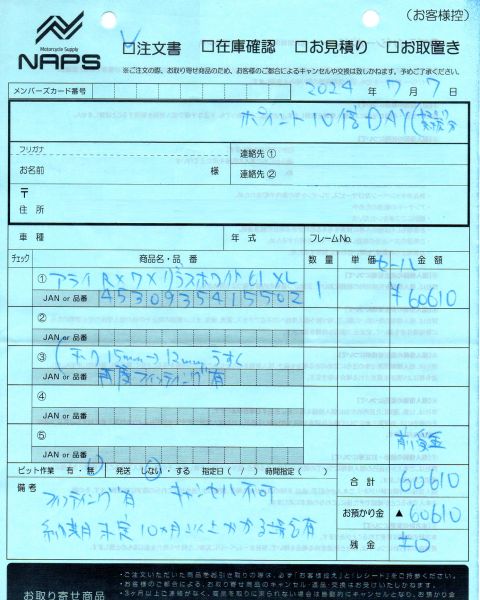 メーカー在庫すらなく、10か月かかるかもしれないと念を押されるも発注した。