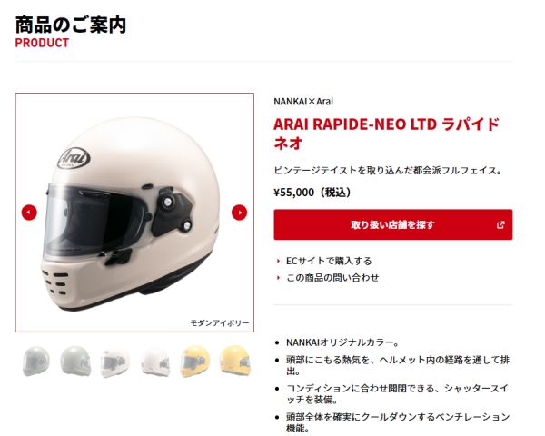 店頭在庫はないが「ナップスヘルメットパーク」に4個在庫があるという。