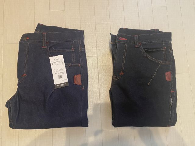 重ねてみるとウインドカットデニムのほうが明るいブルーだ