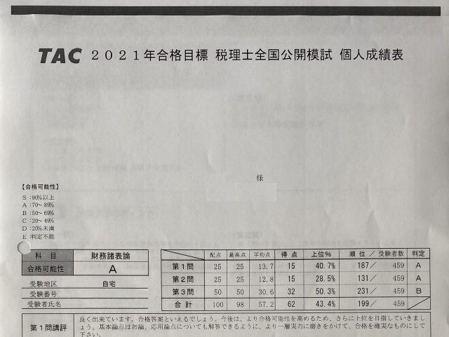 | ●財務諸表論 | 62点 | A判定 |