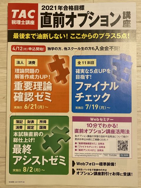 完全合格目指して、TACの独学道場を申し込む。
