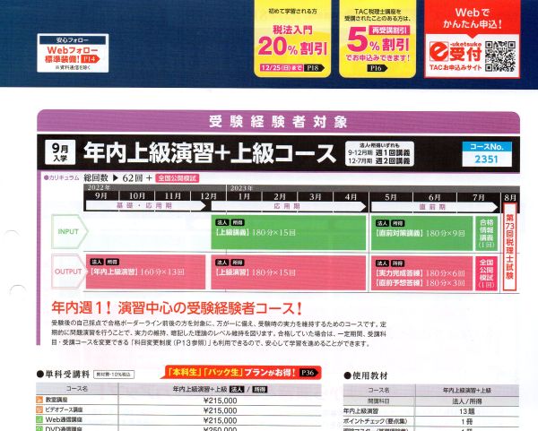 受験経験は今年の1回あるから、年内上級演習+上級コースにした。