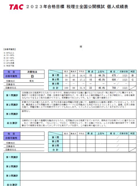 TAC,大原の回答速報ではボーダーラインに届かない。